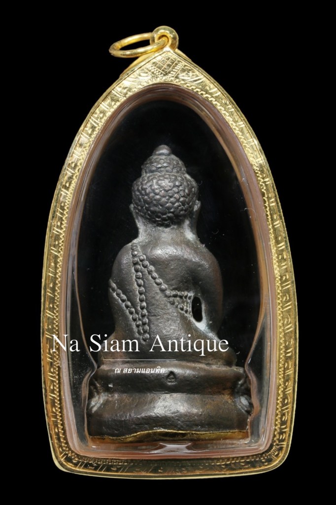 เนื้อนวะโลหะผิวเดิมๆทั้งองค์ ผิวพรรณแบบพระตั้งหิ้ง(ผิวมะระ) ด้านหลังมีตอกโค้ดตัวนะคมชัดลึก ก้นผงพรายกุมาร