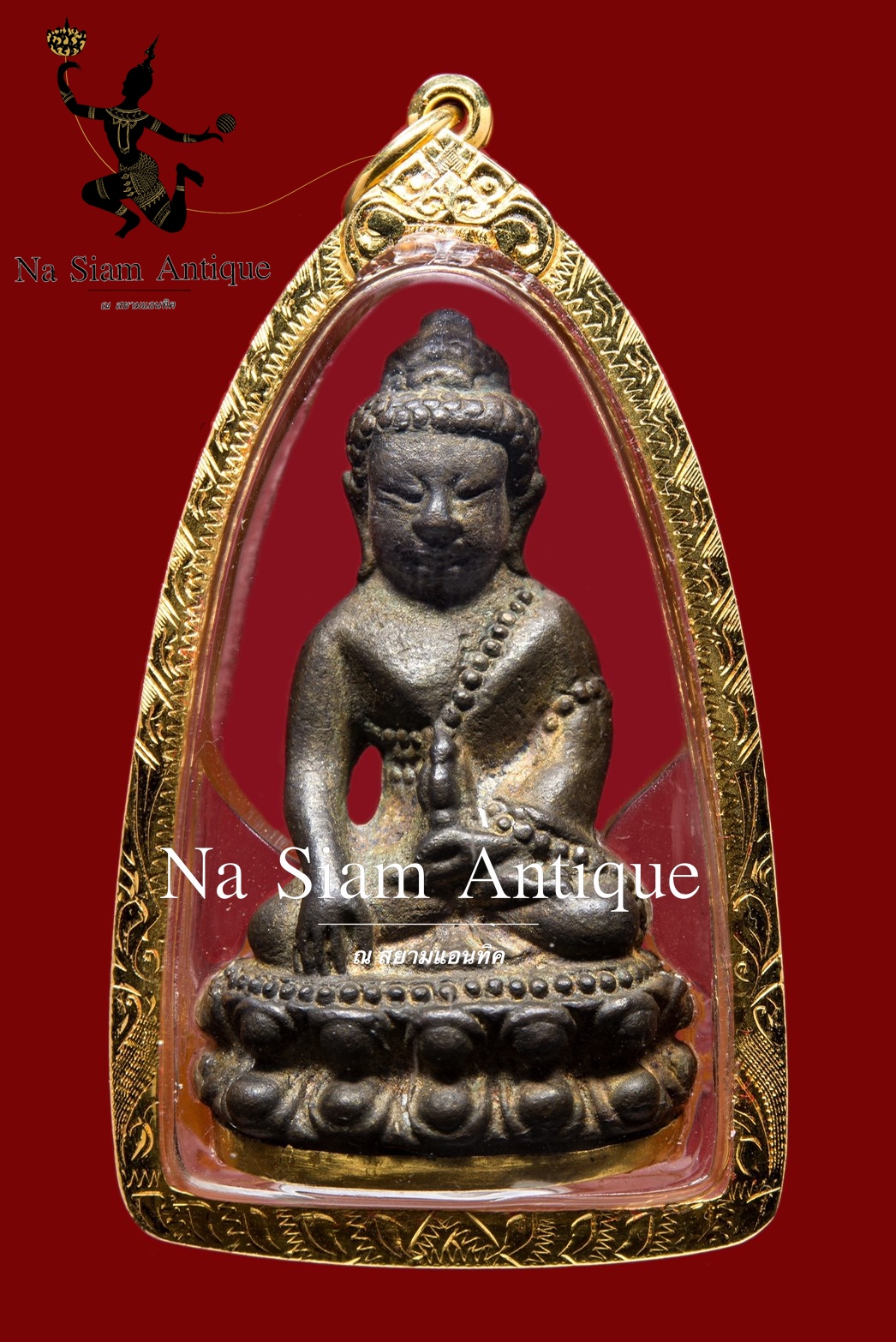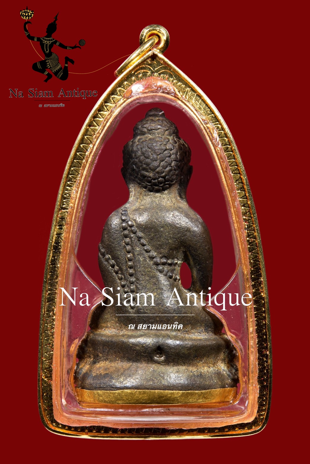 เนื้อนวะโลหะผิวเดิมๆทั้งองค์ ผิวพรรณแบบพระตั้งหิ้ง(ผิวมะระ) ด้านหลังมีตอกโค้ดตัวนะคมชัดลึก ก้นหุ้มทองคำ