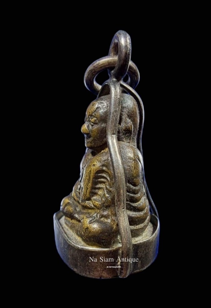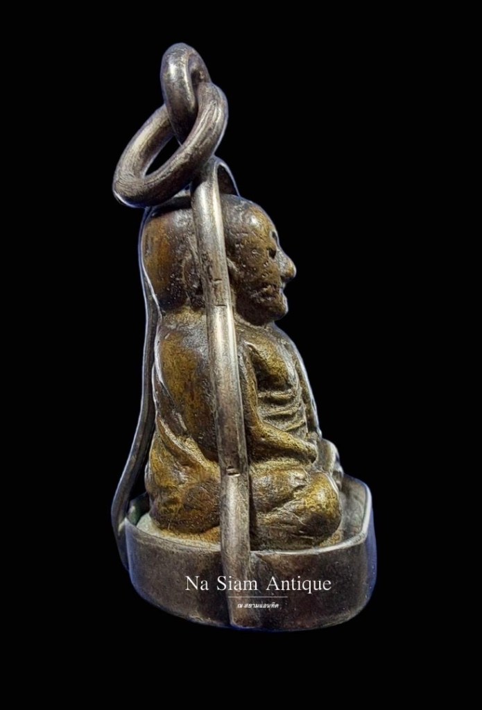Luang Phor Ngern’s small cast statue “LoopLor” monk have been accepted by amulet collectors. They are highly respected for the power to protect worshippers from danger whilst also increasing fortune, charm, and success.This particular amulet is known as Pim Kee Dta, referring to the sleepy eyes